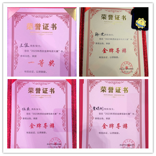西安海外導游任會,于2020年、2021年度連續(xù)兩屆榮獲西安金牌導游稱號,擔任2023年第十屆西部文化產(chǎn)業(yè)博覽會及第九屆絲綢之路國際藝術節(jié)接待組車隊隨車講解員期間,受到各方賓客好評。